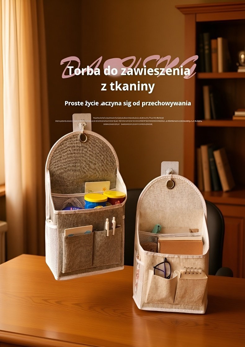 Wieszak na ścianę z torbą z lnu